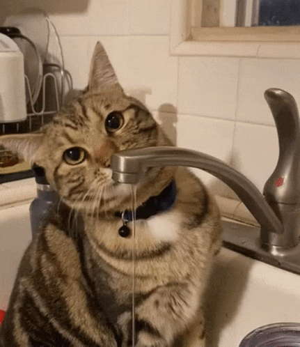 Paglalarawan ng Content: a cat is drinking water from a faucet in a sink