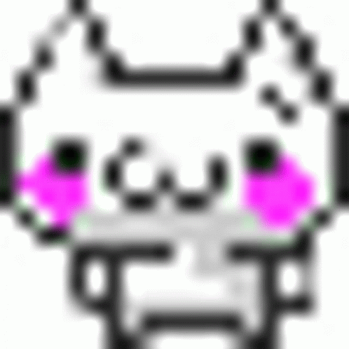 Paglalarawan ng Content: a pixel art drawing of a cat with purple eyes and a crown .