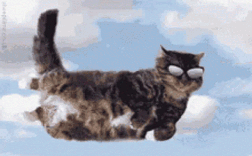 Paglalarawan ng Content: a cat is flying through the air wearing sunglasses