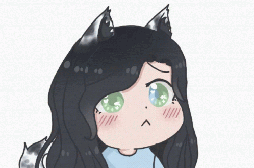 Paglalarawan ng Content: a drawing of a girl with cat ears and green eyes making a sad face