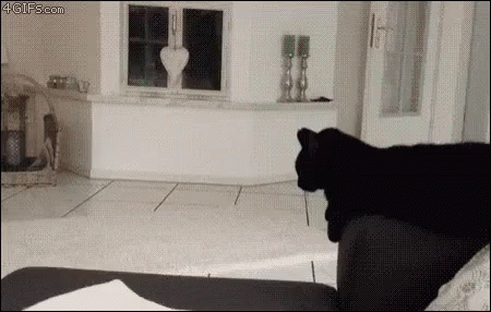 Paglalarawan ng Content: a black cat is sitting on a couch in a living room looking at something .