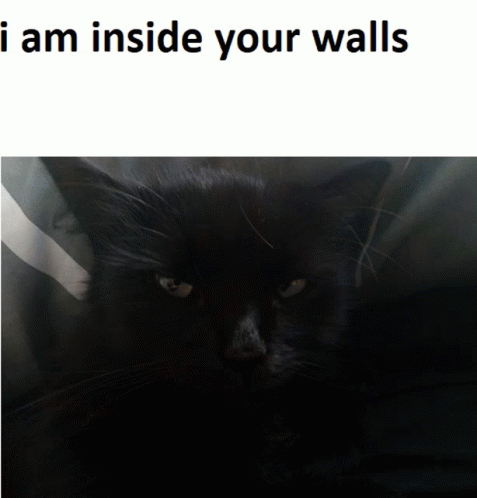 Paglalarawan ng Content: a picture of a black cat with the words i am inside your walls above it