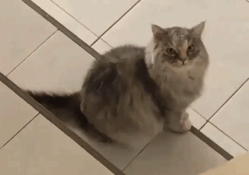 Paglalarawan ng Content: a cat sitting on a tiled floor looking at the camera .