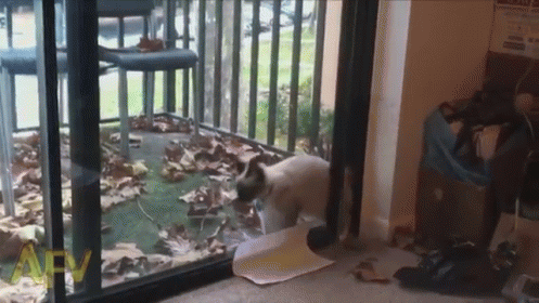 Paglalarawan ng Content: a cat standing in front of a sliding glass door with the letters afv on it