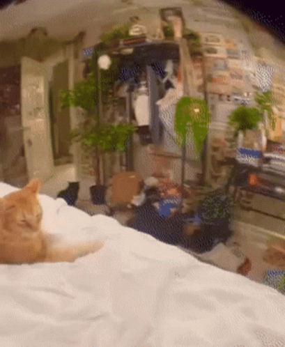 Paglalarawan ng Content: a cat is laying on top of a bed in a room