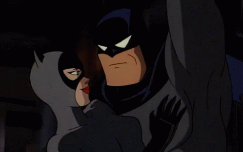 Paglalarawan ng Content: a cartoon of batman kissing catwoman in a dark room
