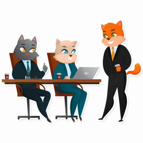Paglalarawan ng Content: a cartoon illustration of three cats in suits sitting at a table