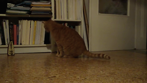 Paglalarawan ng Content: a cat is sitting in front of a bookshelf with a book titled ' a brief history of the world '