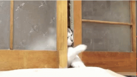 Paglalarawan ng Content: a white cat is peeking out from behind a door .