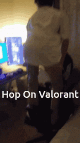 Paglalarawan ng Content: a person standing in front of a computer with the words hop on valorant