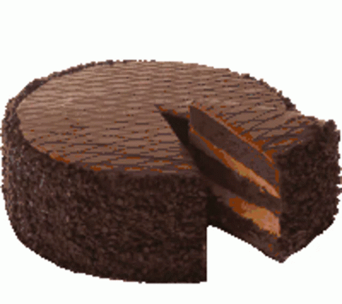 Paglalarawan ng Content: a cake with a slice taken out of it on a white background