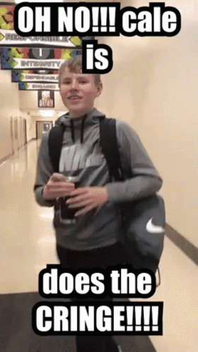 Paglalarawan ng Content: a boy with a backpack and a can of soda says oh no cale is is does the cringe