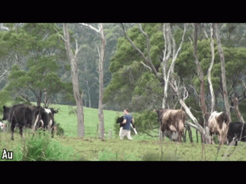 Paglalarawan ng Content: a group of cows are grazing in a field with the letters au on the bottom right
