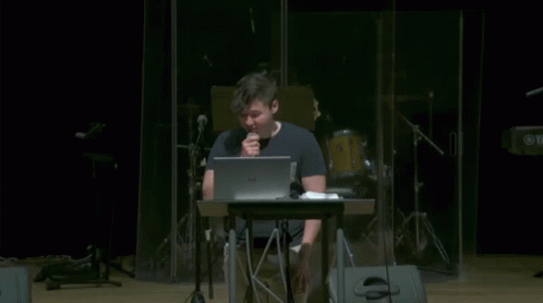 Paglalarawan ng Content: a man sitting at a desk with a laptop and a yamaha keyboard in the background