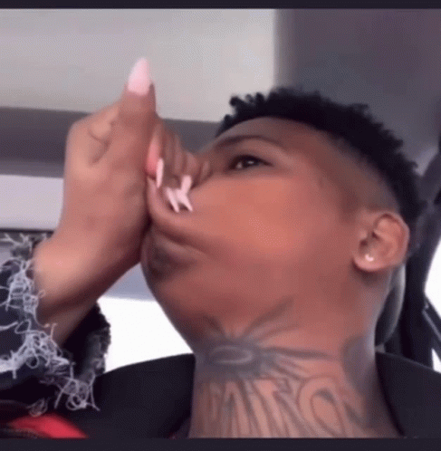 Paglalarawan ng Content: a person with a tattoo on their neck is holding their finger to their nose