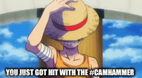Paglalarawan ng Content: a picture of luffy from one piece with a caption that says you just got hit with the camhammer