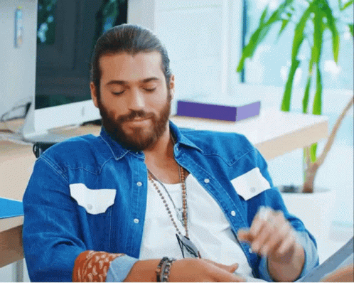Paglalarawan ng Content: a man with a beard is wearing a blue denim shirt and a white shirt