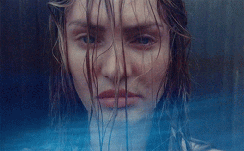Paglalarawan ng Content: a close up of a woman 's face with wet hair behind a glass