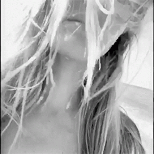 Paglalarawan ng Content: a black and white photo of a woman with a lot of hair coming out of her mouth .