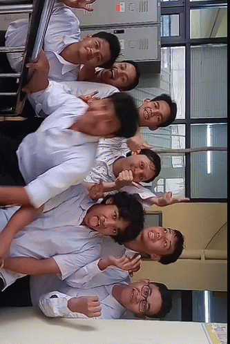 Paglalarawan ng Content: a group of young men are posing for a picture in front of a locker