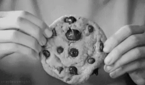 Paglalarawan ng Content: a black and white photo of a person eating a chocolate chip cookie .
