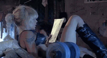 Paglalarawan ng Content: a woman is reading a book while laying on a bed next to a dumbbell .