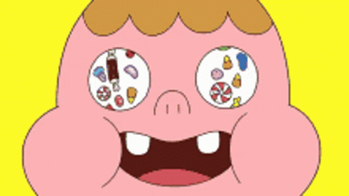 Paglalarawan ng Content: a close up of a cartoon character 's face with cereal in his eyes