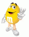 Paglalarawan ng Content: a yellow m & m 's mascot is giving the peace sign .