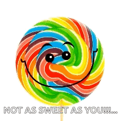 Paglalarawan ng Content: a colorful lollipop with a face on it and the words not as sweet as you