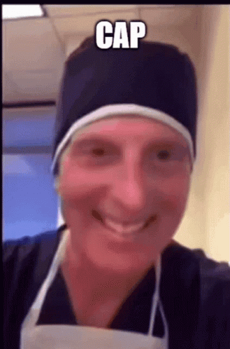 Paglalarawan ng Content: a man wearing a surgical cap and apron is smiling and the caption says cap