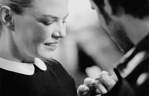 Paglalarawan ng Content: a man and a woman are holding hands and looking at each other in a black and white photo .