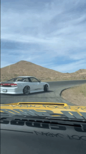 Paglalarawan ng Content: a white car is driving down a road with a hill in the background and the word aero on the windshield