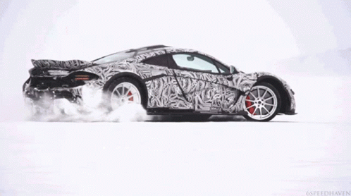 Paglalarawan ng Content: a black and white sports car is drifting on a snowy road