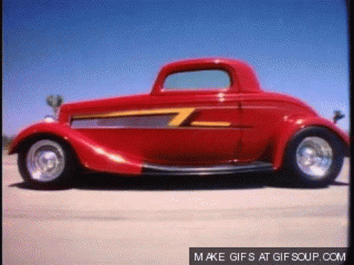 Paglalarawan ng Content: a red car with a yellow stripe on the side says make gifs at gifsoup.com on the bottom