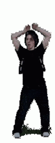 Paglalarawan ng Content: a man in a black shirt is dancing with his hands in the air .