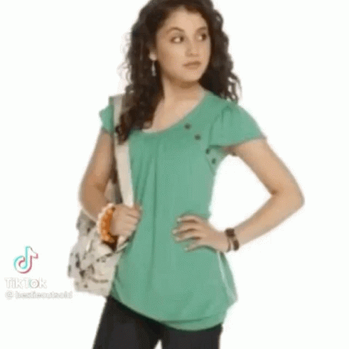 Paglalarawan ng Content: ariana grande is wearing a green shirt and jeans and holding a purse .