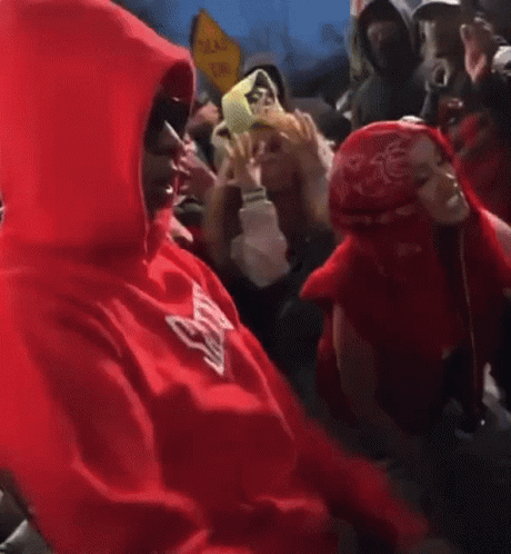 Paglalarawan ng Content: a man wearing a red hoodie with the word nike on it stands in a crowd