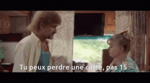 Paglalarawan ng Content: a man and a woman are standing next to each other and the man says tu peux perdre une carte pas 15