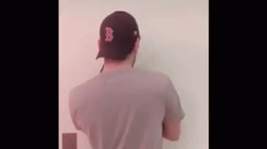Paglalarawan ng Content: a man wearing a baseball cap is standing in front of a wall .