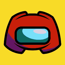 Paglalarawan ng Content: a red among us character with a purple and blue helmet on a yellow background