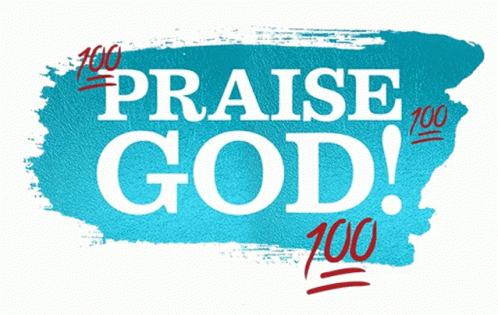 Paglalarawan ng Content: a blue sign that says praise god with 100 written on it
