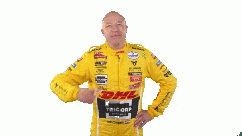 Paglalarawan ng Content: a man wearing a yellow racing suit with dhl written on it