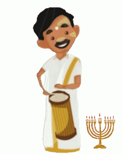 Paglalarawan ng Content: a cartoon drawing of a man playing a drum next to a menorah