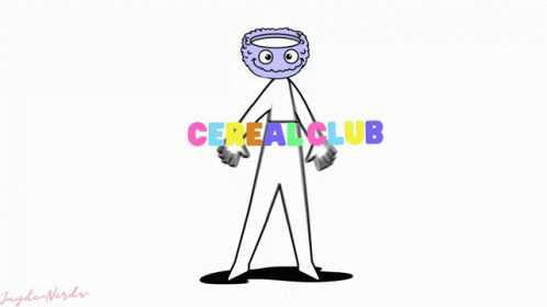Paglalarawan ng Content: a cartoon character with a bowl on his head and the words cereal club behind him