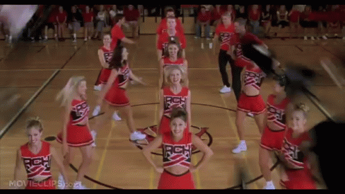 Paglalarawan ng Content: a group of cheerleaders are dancing in a circle on a basketball court .
