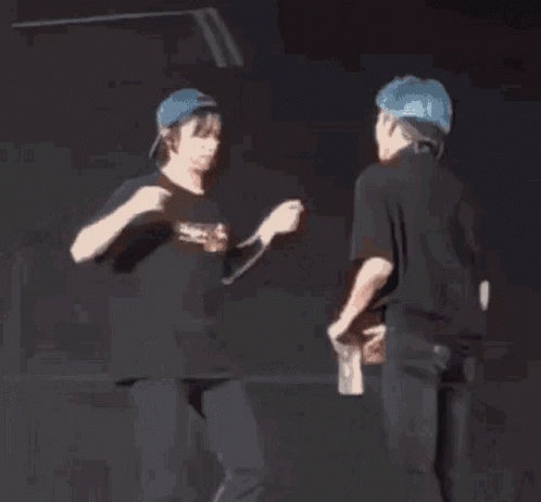 Paglalarawan ng Content: two men are standing next to each other on a stage . one of the men is wearing a blue hat .