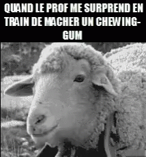 Paglalarawan ng Content: a sheep chewing gum in a black and white photo
