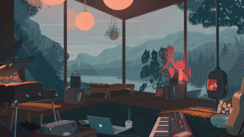 Paglalarawan ng Content: a drawing of a room with a laptop and a keyboard