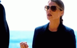 Paglalarawan ng Content: a woman wearing sunglasses and a black jacket is standing in front of the ocean .