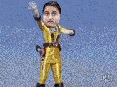 Paglalarawan ng Content: a cartoon of a man in a yellow suit standing in front of an explosion with jib jab written below him